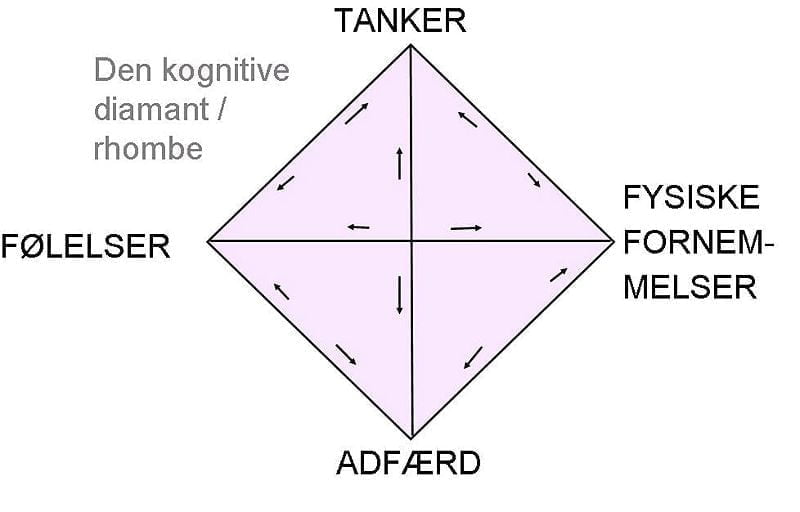• Hvis man ændrer et af de tre elementer – tanker, følelser, handlinger – ændres de andre komponenter også.