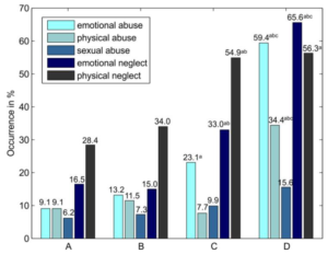 | Seksuel mishandling | Emotionel mishandling | Polyviktimiseret | Ingen mishandling | |