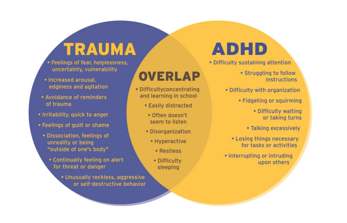 Der findes børn, der oplever traumer. De fører i en del tilfælde til forskellige psykiske lidelser. Der er forskning, der peger på en sammenhæng mellem traumer og angst. Det betyder ikke, at man kan slutte direkte fra tegn på traumer til traumer. Dels er der langt flere faktorer, der spiller ind, dels kan de forskellige symptomer være udtryk for andre lidelser. The National Child Traumatic Stress Network i USA peger på en række symptomoverlap mellem traumer og ADHD, som gør, at børn og traumer ikke altid bliver koblet sammen fra begyndelsen.